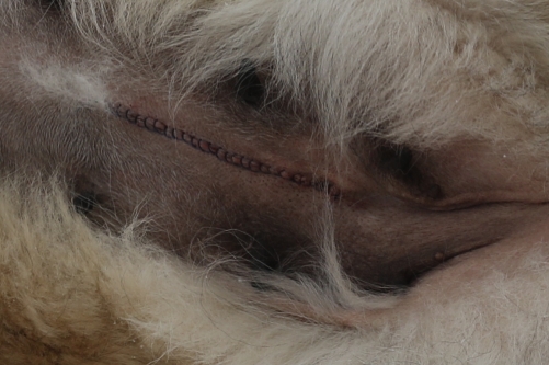 Am Nachmittag sind wir zur Nachkontrolle in der Klinik. Das Fieberthermometer zeigt eine Temperatur von 40,1 Grad Celsius an. Da sie zu Hause aber kein Fieber hatte, bekommen wir als Auflage, zu Hause nach zwei Stunden wieder die Temperatur zu messen. Die Tierärztin vermutet, dass Bella inzwischen so viel Angst vor der Klinik hat, dass ihre Temperatur in die Höhe steigt. Zu Hause hat sie wirklich wieder Normaltemperatur.