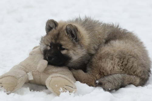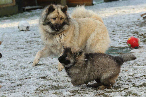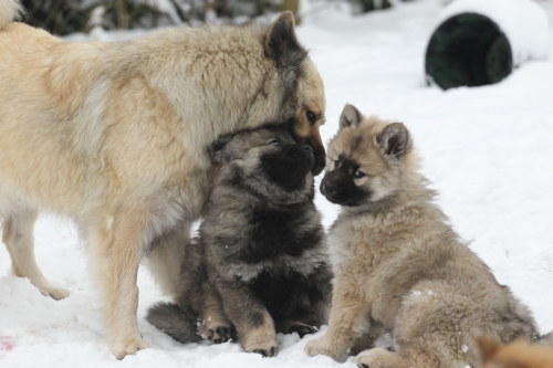Sie haben hier sechs Personen beschäftigt. Ohne meine Eltern, die abwechselnd in den Zeiten, in denen ich arbeiten war, die Betreuung und Versorgung der Welpen übernommen haben, hätte es diesen Wurf gar nicht gegeben. An die paar Stunden Schlaf, die noch übrig geblieben sind, muss man sich halt gewöhnen. In diese 10 Wochen Welpenaufzucht sind Silvester, drei Geburtstage innerhalb der Familie, das Zwischenzeugnis und der Auszug meiner ältesten Tochter gefallen.