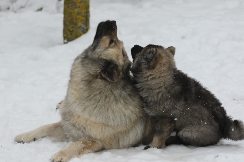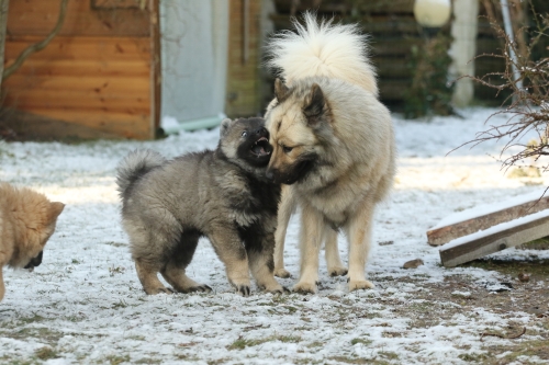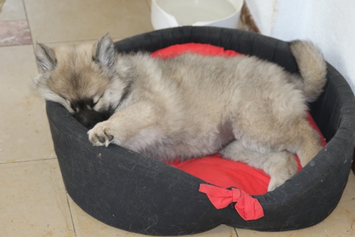 Besonders nachts hört sich das Zähnefletschen, Anbellen und in die Luft beißen immer gefährlicher an. Seit dem Auszug von Joey und Ashes lässt sie die Welpen allerdings wieder in der Nähe schlafen (mindestens 2 Meter Abstand).