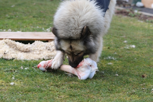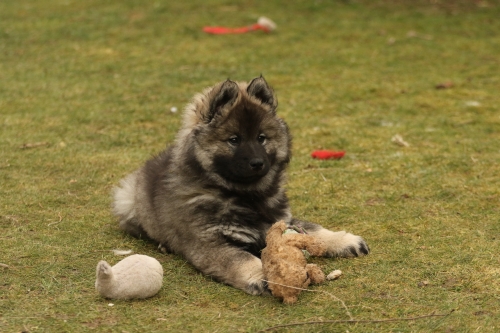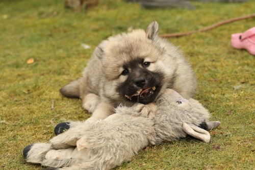 Die zehn Wochen Welpenaufzucht mit einer die meiste Zeit nicht vollständig gesunden Mutter war sehr arbeitsintensiv, nervenaufreibend und kostspielig (die Tierarztkosten waren die größte Ausgabe). Unser Garten sieht aus wie eine Mondlandschaft, die Welpen haben unser Grünzeug massiv reduziert. Natürlich hätten wir ihnen nur einen Teil des Gartens überlassen können (eingezäunt wurden fast nur giftige Pflanzen), aber das habe ich nicht übers Herz gebracht. Sie hatten soviel zu entdecken und wir hatten große Freude dabei, ihnen beim Wachsen und Lernen zuzuschauen. Teppiche, die wir behalten wollten, hatten wir vor der Welpenaufzucht weggeräumt. Sie haben keinerlei Möbel angefressen, noch nicht einmal meinen Schreibtisch, der im Welpenaufzuchtszimmer steht. Ihren Zähnen sind hauptsächlich Kuscheltiere, Kochlöffel, Zahnbürsten, Zeitungen, Kartons und ähnliches zum Opfer gefallen.