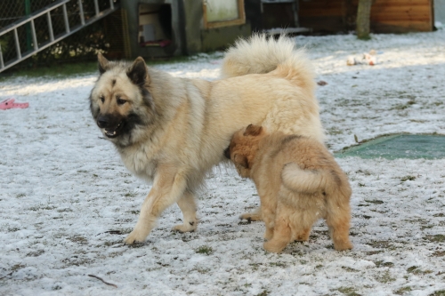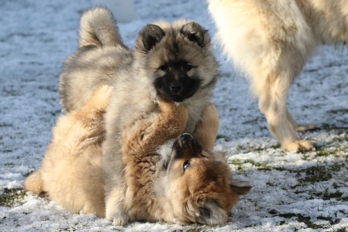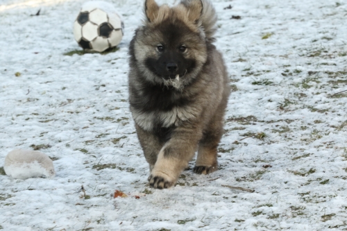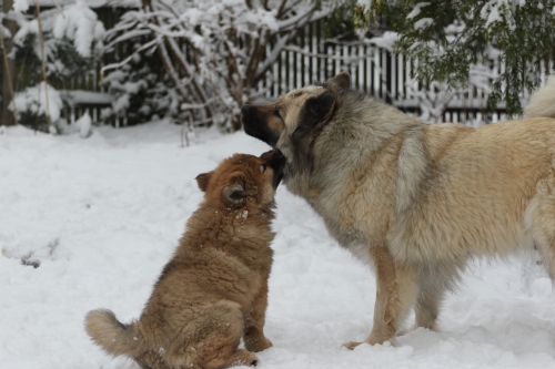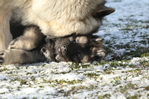 Am Dienstag liegen wirklich einige Zentimeter Schnee. Die Welpen und Bella sind begeistert. Bella kann ihre Narbe im Schnee kühlen und zum Spielen ist Schnee sowieso toll.
