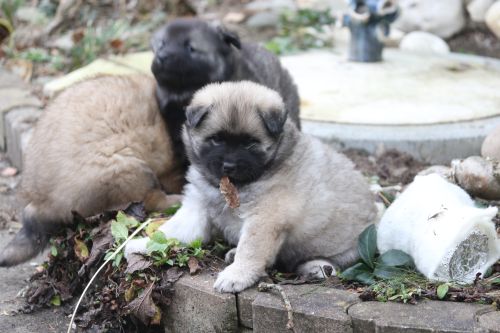 In einem Satz: sie werden anstrengend. Das Welpenzimmer ist fast nur noch zum Schlafen da. Hausgang, Küche, Wohnzimmer und Esszimmer sind ihr Revier. Zu Beginn der Woche durften sie zum ersten Mal die Einfahrt nutzen, da kann man besser rennen. Der Boden bietet bessere Haftung. Ein paar Tage später erkunden sie den Rest des Gartens, da gibt es noch viel mehr zu Entdecken. Im Laufe dieser Woche gewöhnen sie sich an die ersten Halsbänder. Bella macht uns ein wenig Sorgen, da sie immer noch blutigen Ausfluss hat. Da sie gut läuft und frisst und auch ansonsten nichts ungewöhnliches zu bemerken ist, hoffen wir, dass der Ausfluss bei ihr nur etwas länger dauert.