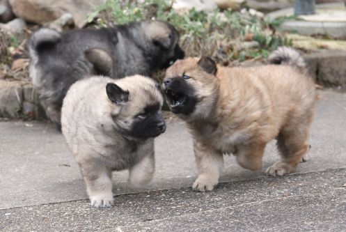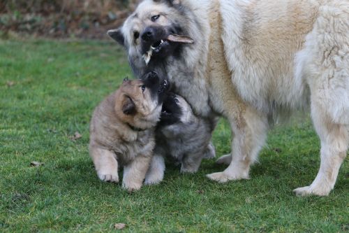 Es wird auch Zeit auszuprobieren, wer hier der bzw die Stärkste ist. Bella zeigt den Kleinen, dass ein Wachhund die ganze Umgebung im Auge behalten muss.