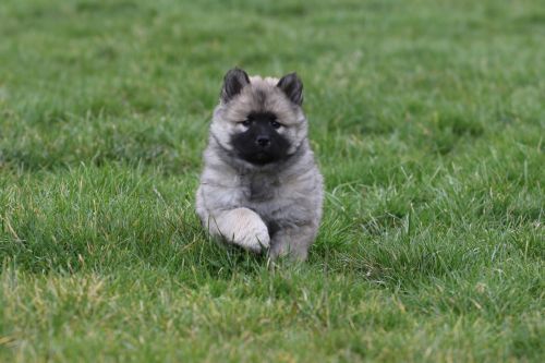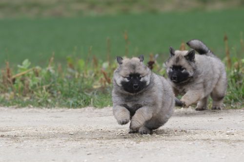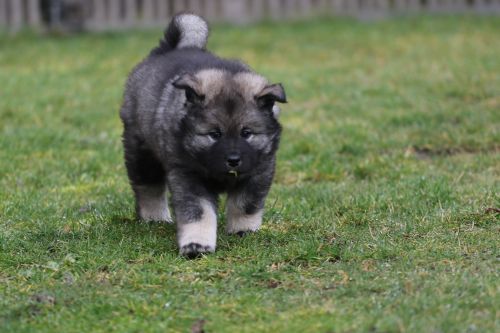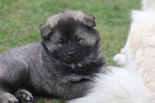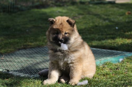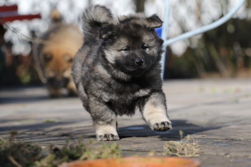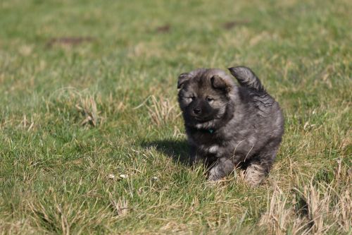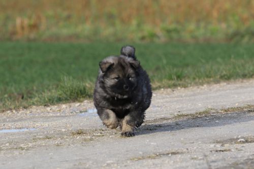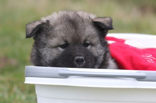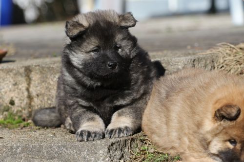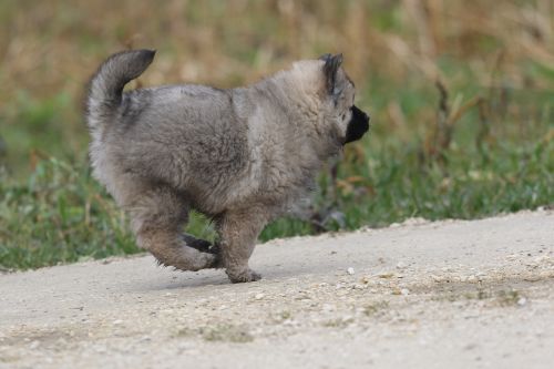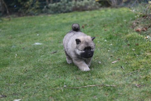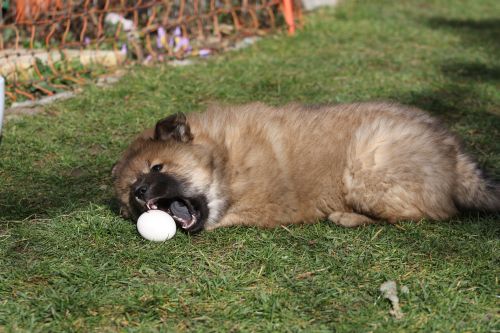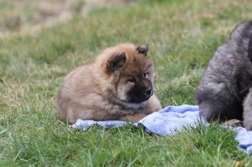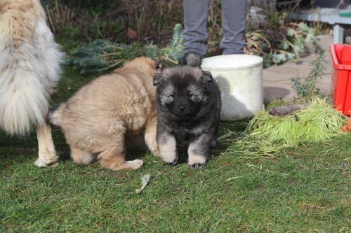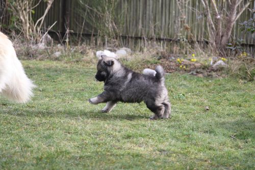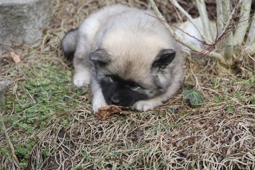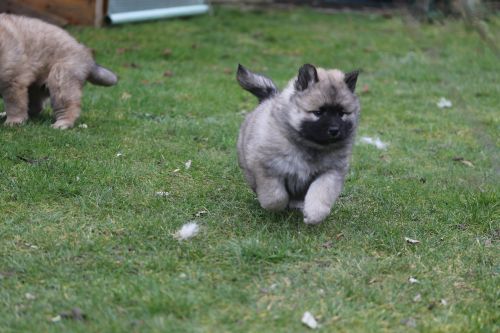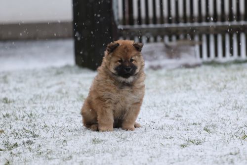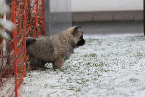 Während der ganzen Welpenaufzuchtzeit haben wir ein sehr wechselhaftes Wetter. Die Bandbreite geht von frühlingshaften Temperaturen mit Sonne bis hin zu Sturmtagen und Schneefällen. Die Welpen dürfen also wettermäßig sehr viel erleben. Bei Sturm gehen sie nachts nicht gerne hinaus. Auch wenn sie die meisten ihrer Geschäfte draußen erledigen, sind sie dann kaum dazu zu bewegen, sich im Garten zu lösen. Mit der Sauberkeitserziehung sind wir eigentlich recht weit, das Zeitungspapier ist für sie das Zeichen, wo sie zur Not hinpinkeln können. Gelegentlich sorgt das Wetter für kleinere Rückschläge.