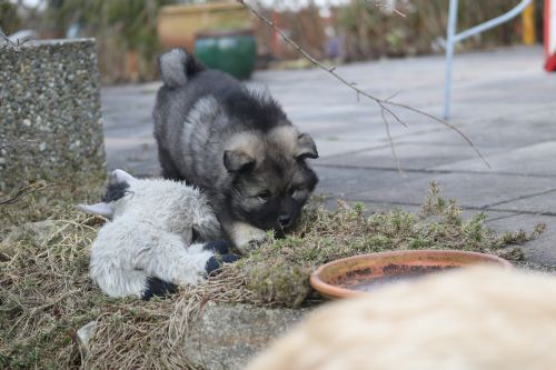 Am 8. Februar ist das Wetter wieder einmal so schlimm, dass die Welpen kaum nach draußen gehen. Dann wird eben drinnen gespielt.