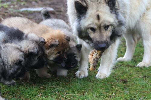 Mama Bella muss die Kleinen natürlich auch gelegentlich daran erinnern, wer hier das Sagen hat und für eine Steigerung der Frusttoleranz sorgen. Da läuft ihnen gleich das Wasser im Maul zusammen. Und gelegentlich dürfen sie dann auch ein wenig nagen.