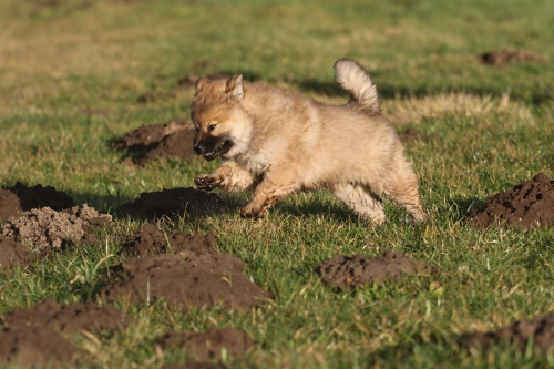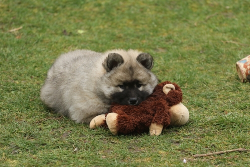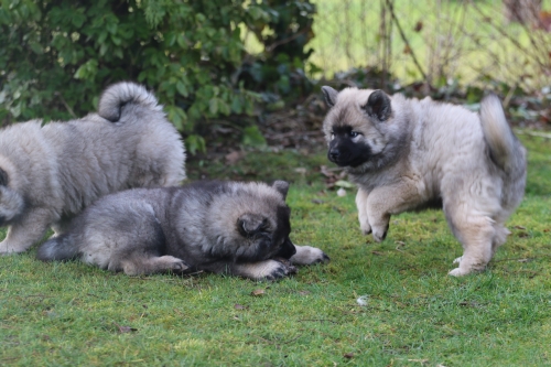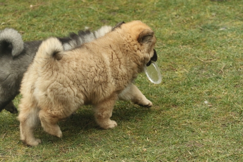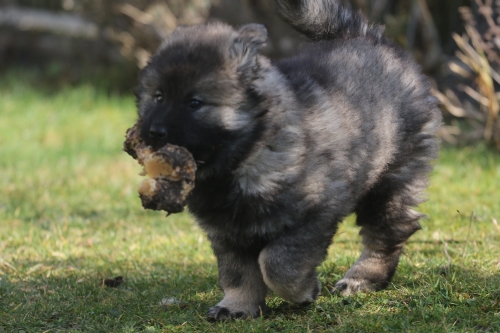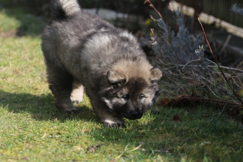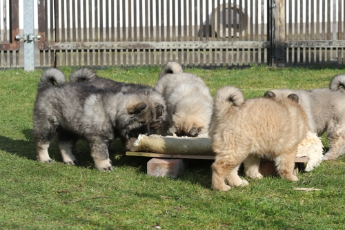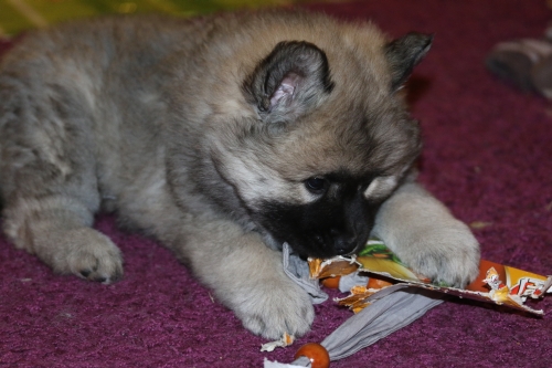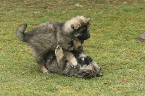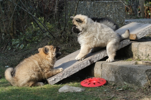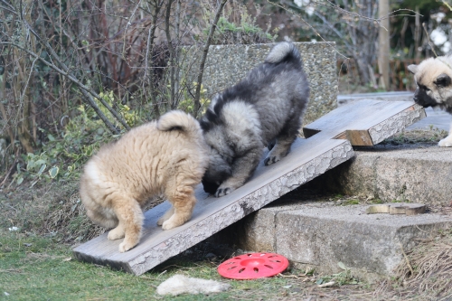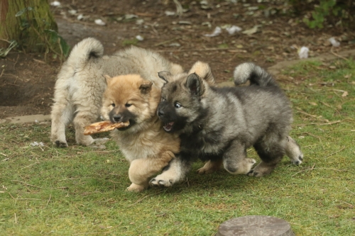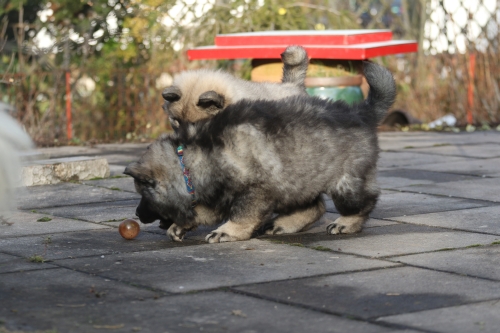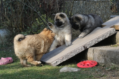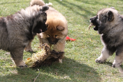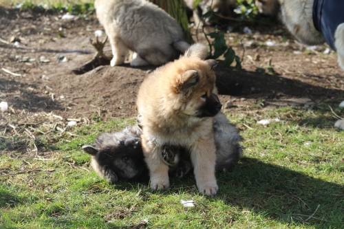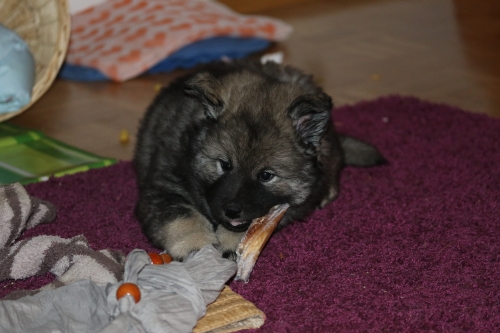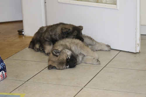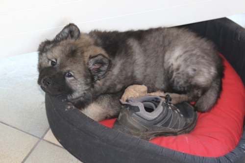 Inzwischen sind die Welpen stubenrein (bis auf ganz wenige Unfälle, wenn wir die Tür nicht schnell genug öffnen). Besonders Ayko beschwert sich sehr lautstark, wenn er mal pinkeln muss und wir das nicht gleich kapieren.