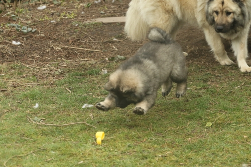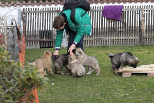 Am Dienstag besucht uns Papa Basko mit seiner Familie. Bella erkennt ihn sofort wieder und lässt ihn ohne Zögern in den Garten zu den Welpen. Basko weiss allerdings nicht so recht, was er mit diesen hundeähnlichen Wesen anfangen soll. Ayko findet das Ganze gar nicht toll und flüchtet sich ins Haus, um von dort seinen Vater anzubellen.
