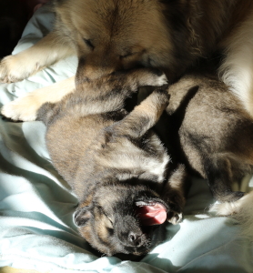 Gleich zu Beginn dieser Woche wurden die Welpen und Ada und Bella entwurmt. Bella schluckt ihre Tabletten immer anstandslos, bei Ada dagegen muss man energischer werden. Die KLeinen waren ebenfalls nicht begeistert. Allerdings hatte ich vorgesorgt und gleich mal Ziegenmilch daneben gestellt. Nach dem Wurmmittel gab es dann ein wenig Milch ins Schnäuzchen, dann hielt sich die Meckerei in Grenzen.