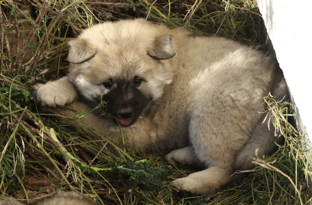 Vor der Haustür haben sie eine Stelle mit unserem im Sommer gemachten Heu bekommen, das sie gerne zum Pinkel uns Liegen verwenden. Davon werden wir ein wenig was an unsere Welpenbesitzer weitergeben, damit die Kleinen gleich wissen, wo sie im Garten zum Pinkeln hingehen können. Fremde Gärten sind für Welpen immer eine Herausforderung, da sie meist recht unsicher sind, wo sie hingehen sollen. Das Heu gibt ihnen hier eine Orientierung.