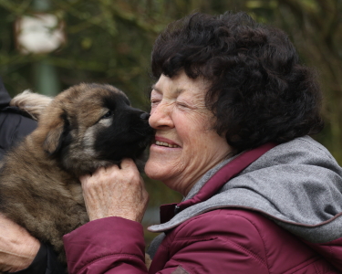 Am Sonntag bekamen wir Besuch von Schwester Babette. Sie war sehr vorsichtig mit den Welpen und hat immer wieder zu Ada und Bella geschielt, um zu schauen, ob sie auch wirklich so nahe kommen darf. Die beiden hatten aber kein Problem damit. Celly wollte nach kurzer Zeit gleich mit Babette spielen.