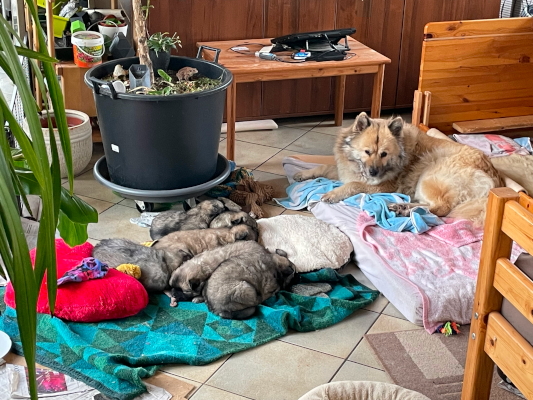 Heute, am Samstag, 14.02, haben wir ungefähr die Halbzeit erreicht. Einige der Kleinen werden wohl in guten vier Wochen ausziehen. Für einen kleinen Rüden suchen wir noch ein passendes Zuhause. Manche Absagen kommen recht spät.