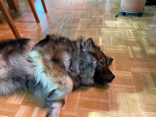 Nachmittags besuchte dann noch die Nachbarin meiner Eltern mit Kind die Welpen, während ich mit Ada zum Tierarzt gefahren bin. Schon am Sonntag hatten sich Ohrprobleme angekündigt. Diese können natürlich auch durch das Belecken der Ohren von den Welpen ausgelöst worden sein. An diesem Tag benötigte Ada dann auch noch Schmerzmittel.