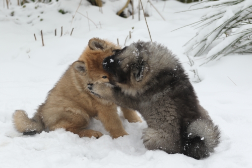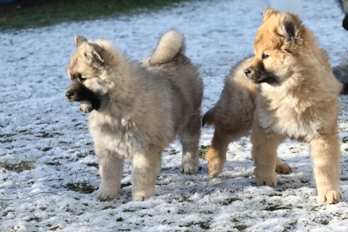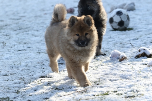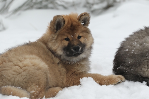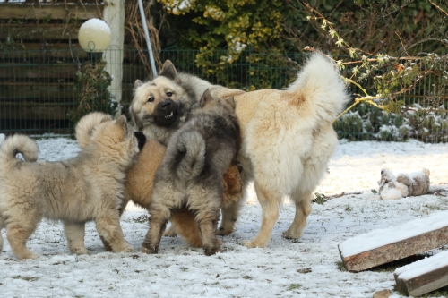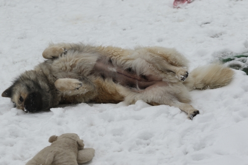 Am Dienstag liegen wirklich einige Zentimeter Schnee. Die Welpen und Bella sind begeistert. Bella kann ihre Narbe im Schnee kühlen und zum Spielen ist Schnee sowieso toll.