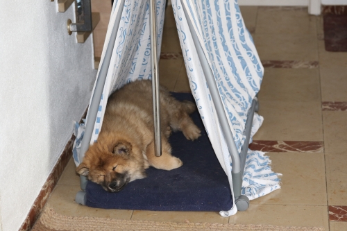 Besonders nachts hört sich das Zähnefletschen, Anbellen und in die Luft beißen immer gefährlicher an. Seit dem Auszug von Joey und Ashes lässt sie die Welpen allerdings wieder in der Nähe schlafen (mindestens 2 Meter Abstand).