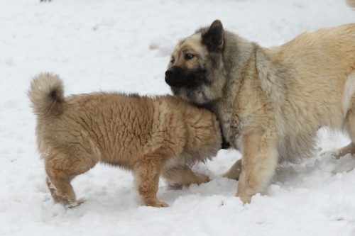 Nachmittags ist der Schnee wieder geschmolzen und wir nutzen die Zeit für letzte Bilder. Ayko wird gleich abgeholt.