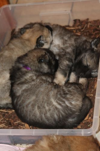 Alle möglichen Schlafplätze werden ausprobiert. Die Kiste mit Rindenmulch sollte eigentlich als Toilette dienen. Aber das haben sie erst drei Wochen später erkannt. Zum Schlafen war die jedenfalls toll und sehr beliebt.