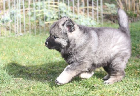 In einem Satz: sie werden anstrengend. Das Welpenzimmer ist fast nur noch zum Schlafen da. Hausgang, Küche, Wohnzimmer und Esszimmer sind ihr Revier. Zu Beginn der Woche durften sie zum ersten Mal die Einfahrt nutzen, da kann man besser rennen. Der Boden bietet bessere Haftung. Ein paar Tage später erkunden sie den Rest des Gartens, da gibt es noch viel mehr zu Entdecken. Im Laufe dieser Woche gewöhnen sie sich an die ersten Halsbänder. Bella macht uns ein wenig Sorgen, da sie immer noch blutigen Ausfluss hat. Da sie gut läuft und frisst und auch ansonsten nichts ungewöhnliches zu bemerken ist, hoffen wir, dass der Ausfluss bei ihr nur etwas länger dauert.