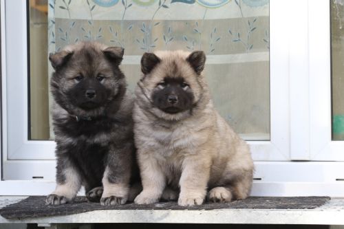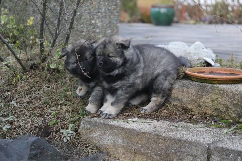 Sobald Bella bellt, flüchten die Kleinen entweder vor die Küchentür oder vor den Freisitz. Nur dann sitzen sie so brav wie hier auf dem Foto Joey und Ashes. Anny sieht das nicht immer ein und bleibt erstmal liegen.