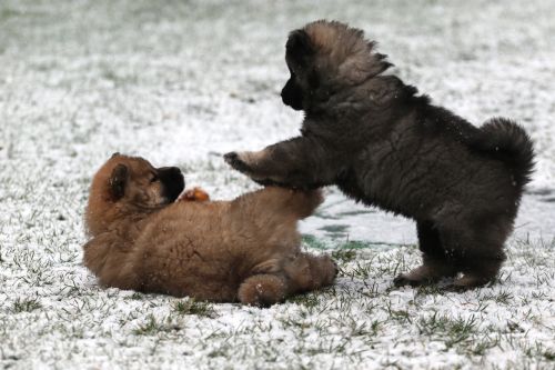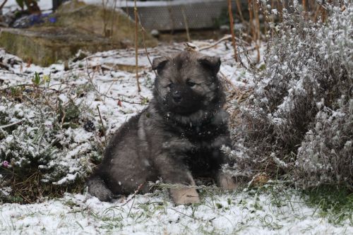 Einen Tag später haben wir dann wieder Schnee. Das ist für die Kleinen natürlich toll, schließlich haben sie genug Fell.