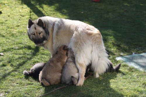 Wochenzusammenfassung (08.02.2015 bis 14.02.2016): Diesen Montag sind also nun schon sechs Wochen vergangen seit die Kleinen geboren wurden. Da Bella immer noch blutigen Ausfluss hat, rufen wir in der Tierklinik an. Sie beruhigen uns und meinen, solange Bellas Verhalten normal ist und sie kein Fieber hat, gut frisst und auch ansonsten aktiv ist, müssen wir uns keine Sorgen machen. Leider ändert sich genau das im Laufe der Woche dramatisch und deswegen sind wir am Donnerstag in der Tierklinik. Die Ultraschalluntersuchung zeigt, dass die Gebärmutter größer als bei der ersten Untersuchung ist. Die Kleinen müssen abgestillt werden, damit Bella stärkere Medikamente bekommen kann. Sollte das nichts helfen, wird eine Operation nötig sein, die aber auch nur durchgeführt werden kann, wenn sich das Milchdrüsengewebe zurückgebildet hat. Sie bekommt ein Medikament, das die Milchbildung reduziert und wir müssen dafür sorgen, dass die Kleinen nicht mehr bei ihr trinken können. Das lässt sich leider meist nur durch räumliche Trennung durchsetzen, da Bella immer noch Milch wie eine Milchkuh gibt.