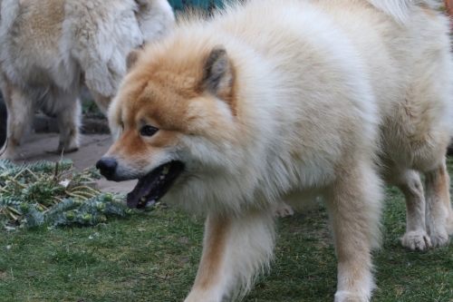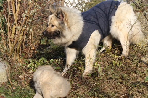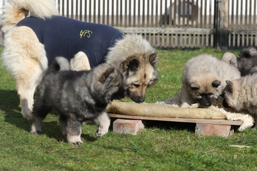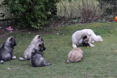 Am Dienstag besucht uns Papa Basko mit seiner Familie. Bella erkennt ihn sofort wieder und lässt ihn ohne Zögern in den Garten zu den Welpen. Basko weiss allerdings nicht so recht, was er mit diesen hundeähnlichen Wesen anfangen soll. Ayko findet das Ganze gar nicht toll und flüchtet sich ins Haus, um von dort seinen Vater anzubellen.