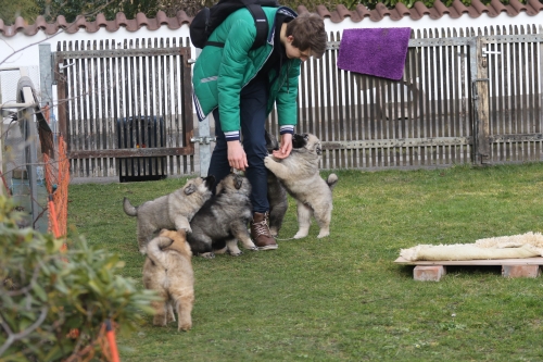Jeden Tag sind wir dabei die Haufen der Welpen einzusammeln. Erstaunlich, was da hinten alles rauskommt.