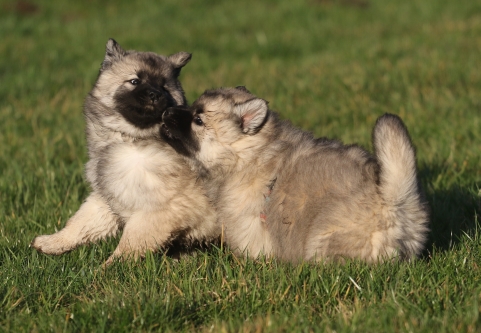 Nachts ist das Verhältnis von Bella zu den Welpen recht gespannt. Sie lässt sie kaum in die Nähe. Tagsüber spielt sie viel mit ihnen.