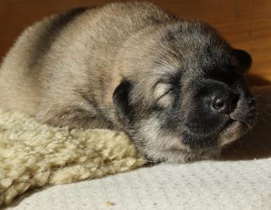 Ada geht es gut, sie hat wieder Normaltemperatur, ist sehr entspannt, wenn sie alle Kleinen um sich hat. Gleichzeitig passt sie gut auf ihre Kleinen auf. Bella darf die Kleinen noch nicht begüßen und auch uns hat sie genau im Auge, wenn wir einen Welpen zum Kuscheln oder Wiegen holen.
