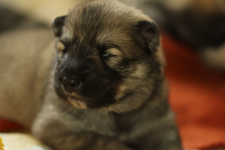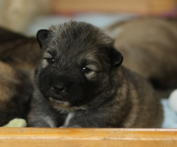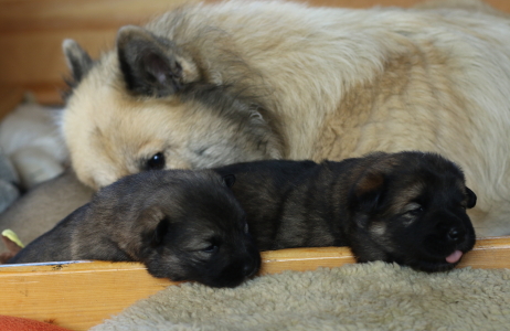 Eigentlich hofften wir ja, dass unsere Welpen uns schon früher anschauen, aber dieses Mal sind sie besonders faul. Cindy machte am 15.Lebenstag endlich die Augen auf, am 16. Tag folgten Cookie und Conny. Cilly schaut uns immer noch nicht an. Sie hat aber wohl zu viel zu tun mit Zunehmen und Großwerden. Das kann sie perfekt. Jetzt wiegt sie schon knapp 2 kg. Aber Cookie strengt sich an und hat ihr Gewicht schon versechsfacht.
