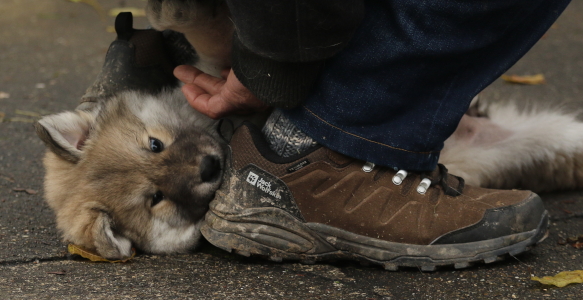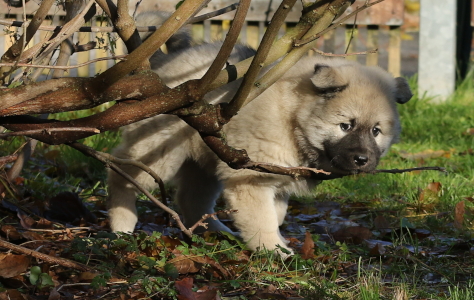 Die Welpen sind jetzt am liebsten draußen. Da gibt es so viel zu entdecken. Nur besonders schlechtes Wetter lässt sie ein wenig zögern. Auf der Terrasse sind sie fleißig am Stauden stutzen. Da gibt es sowieso zu viel Grünzeug. Von unserem Altholzlagerplatz (unter dem ein paar Igel schlafen) schleppen sie immer mal wieder ein paar Äste an.