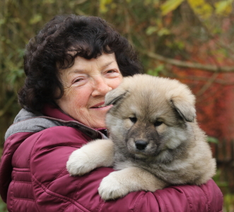 Am Sonntag bekamen wir Besuch von Schwester Babette. Sie war sehr vorsichtig mit den Welpen und hat immer wieder zu Ada und Bella geschielt, um zu schauen, ob sie auch wirklich so nahe kommen darf. Die beiden hatten aber kein Problem damit. Celly wollte nach kurzer Zeit gleich mit Babette spielen.