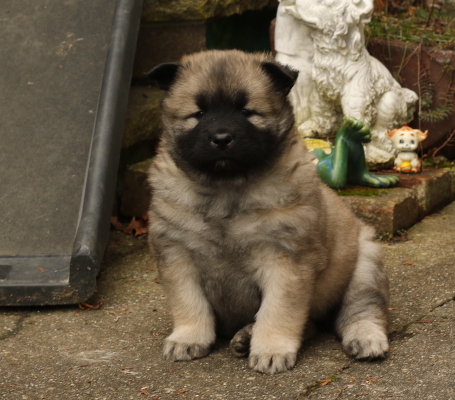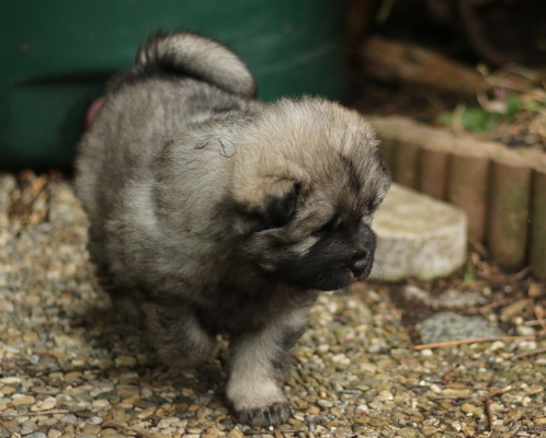 Auf Darius bin ich wirklich gespannt. Unser kleines Bärchen ist der einzige Welpe ohne Maske (sie löst sich gerade auf) und seine Ohren stehen auch schon. Seine Zunge muss ich unbedingt einmal fotografieren. Sie färbt sich gerade schön blau.